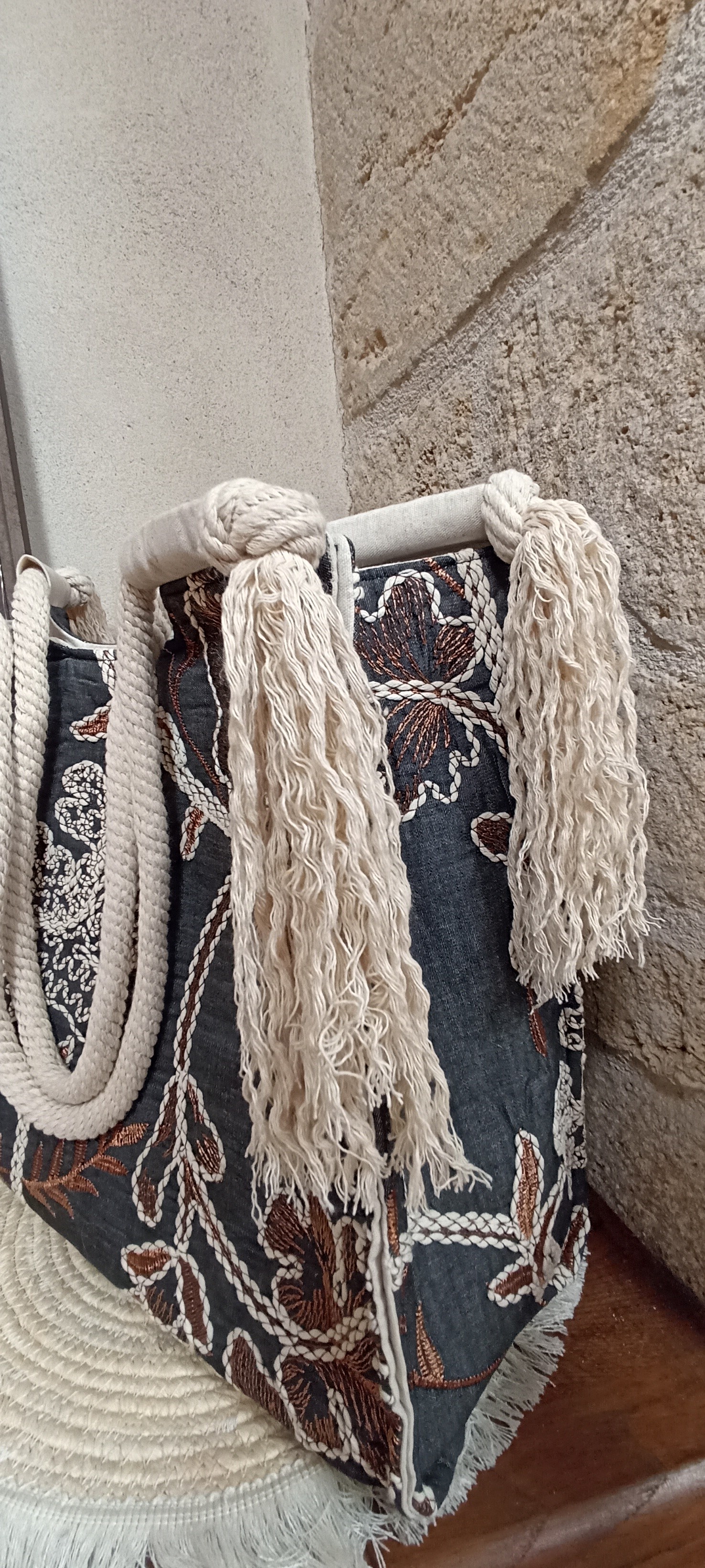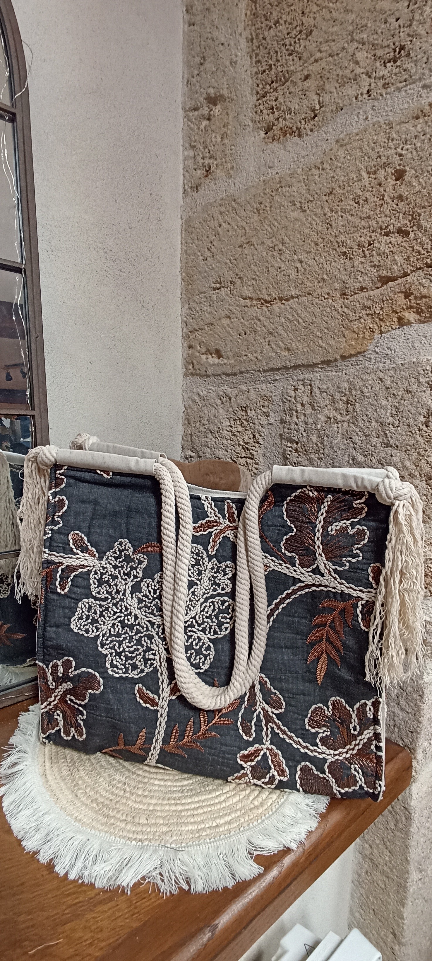 Sac cabas dans un style à la fois chic et bohème avec ses magnifique broderies. Très pratique pour les balades en ville ou pour aller à la plage. Il dispose d'une grande contenance et possède un look vraiment original.